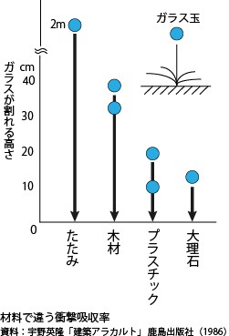 例えば、大理石に比べて2~3倍の衝撃吸収能力があります。